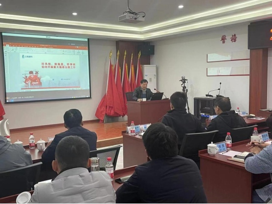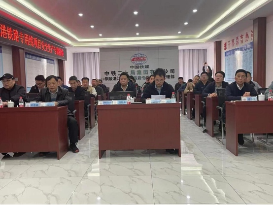 為凝聚全員安全生產意識,不斷提高安全生產管理水平,3月27日下午,江北港鐵路專用線公司在中鐵二十局項目經理部組織召開2023年度江北港鐵路專用線項目安全生產專題講座?;顒佑杉瘓F公司總工程師,江北港鐵路公司董事長、總經理張葉來主持,集團公司安全生產領導小組副主任趙進節到場指導,江北港鐵路專用線項目施工、監理單位安全生產相關管理人員共30余人到會聆聽講座。