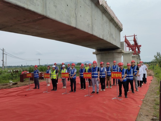 本次演練采取現(xiàn)場實戰(zhàn)演練的方式,充分模擬在T梁架設(shè)過程中,作業(yè)人員失穩(wěn)高處墜落受傷,需要立即啟動應(yīng)急響應(yīng)程序的場景。演練過程中,在指揮長的統(tǒng)一指揮下,各小組分工明確、銜接順暢、反應(yīng)迅速、處置得當,各環(huán)節(jié)協(xié)調(diào)配合連貫,演練過程井然有序,各項工作均在預(yù)定時間內(nèi)完成,達到了演練預(yù)期效果。