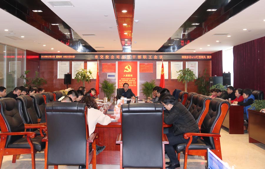 2018年2月22日下午,市交投公司召開全體干部職工會議,傳達學習貫徹22日上午市委、市政府召開的全市招商引資招才引智工作動員大會精神。會議指出,市委、市政府以深化供給側結構性改革和產業轉型升級為主線,堅持將招商引資、招才引智作為項目建設、經濟發展的主抓手,年初第一天上班即召開“雙招雙引”動員大會,體現了對項目投資和建設工作的高度重視,公司上下要結合2018年公司轉型發展和各自崗位實際,認真貫徹全市動員大會精神,扎實做好市委、市政府布置給公司的招商引資招才引智工作任務。