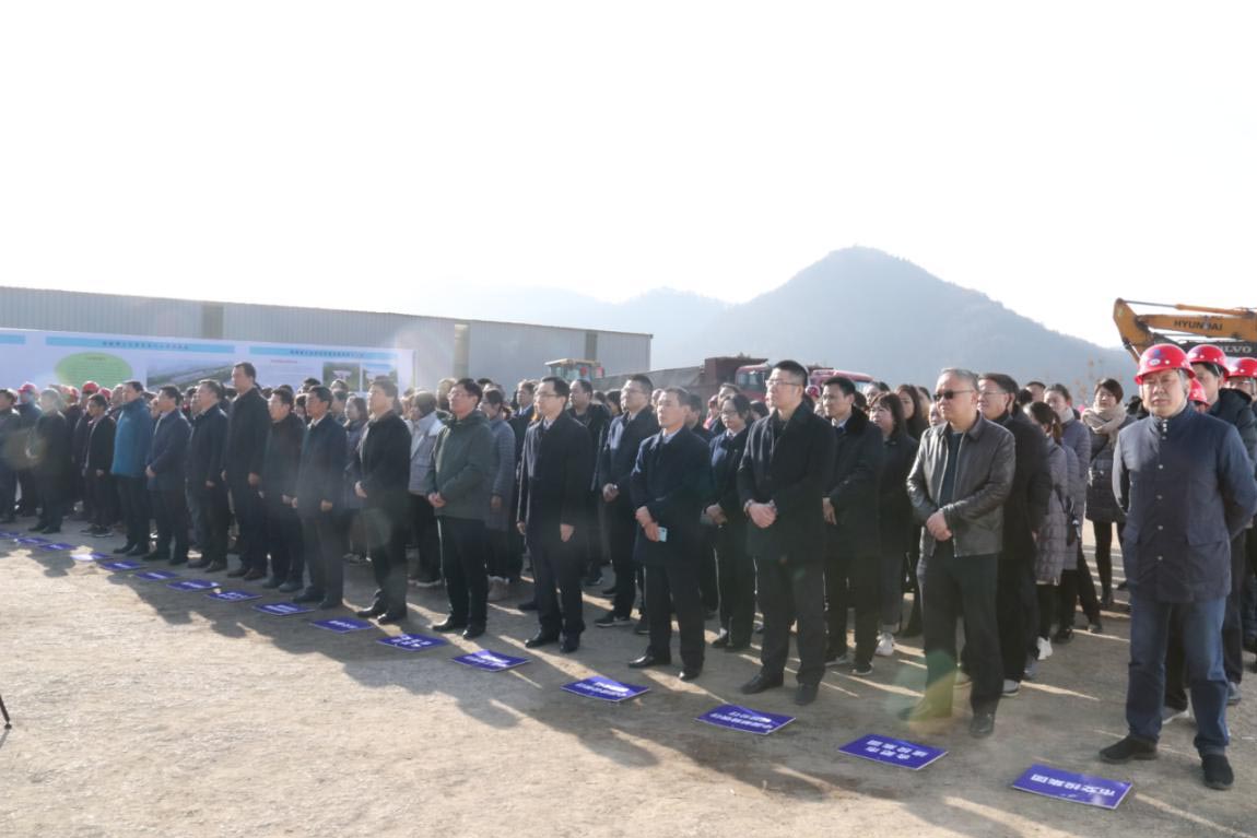 工程開工現(xiàn)場,與會領(lǐng)導(dǎo)共同為項(xiàng)目奠基培土,并觀看了項(xiàng)目展板。