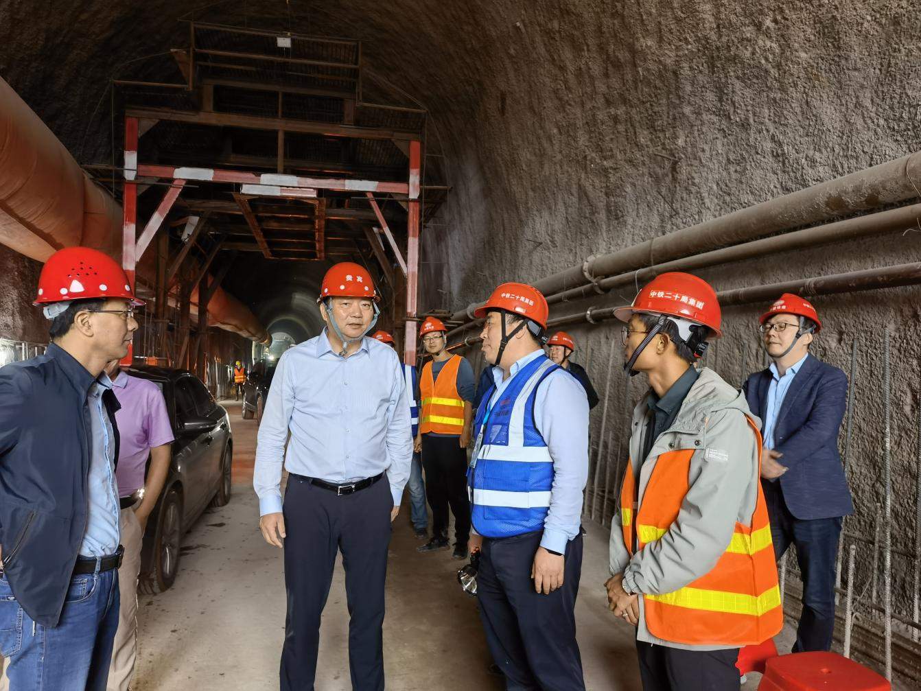在七家山隧道進口內,何成龍邊走邊看,深入隧道施工掌子面檢查隧道施工情況,詳細詢問了解施工進展情況,他對目前隧道施工狀況表示充分肯定并指出:要加強安全質量管理,緊盯管控重點和關鍵環節,確保安全質量;要以工期為主線,持續完善工藝工法,努力提升進度水平;要持續改進方式方法,激發廣大施工現場參戰人員的施工熱情。