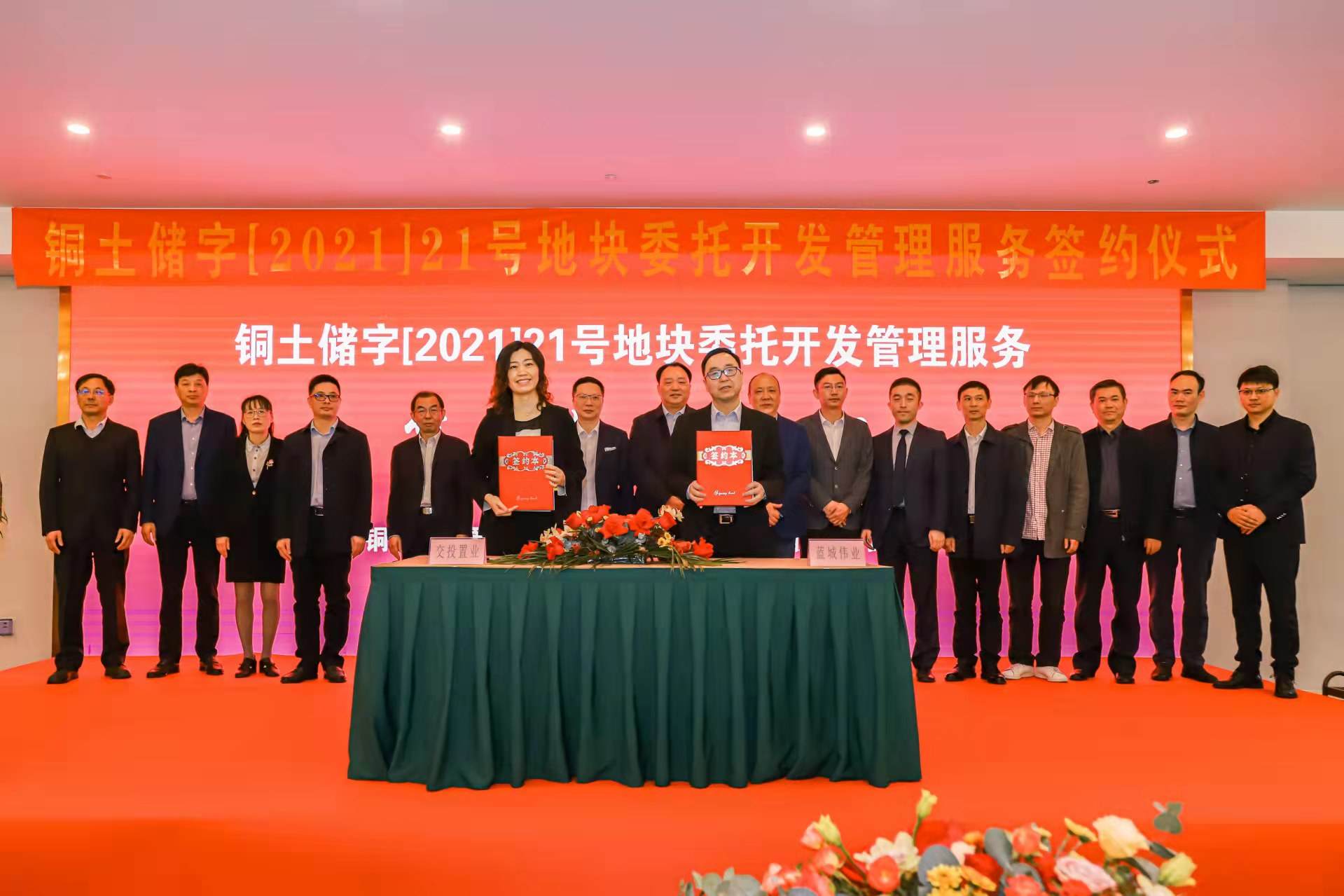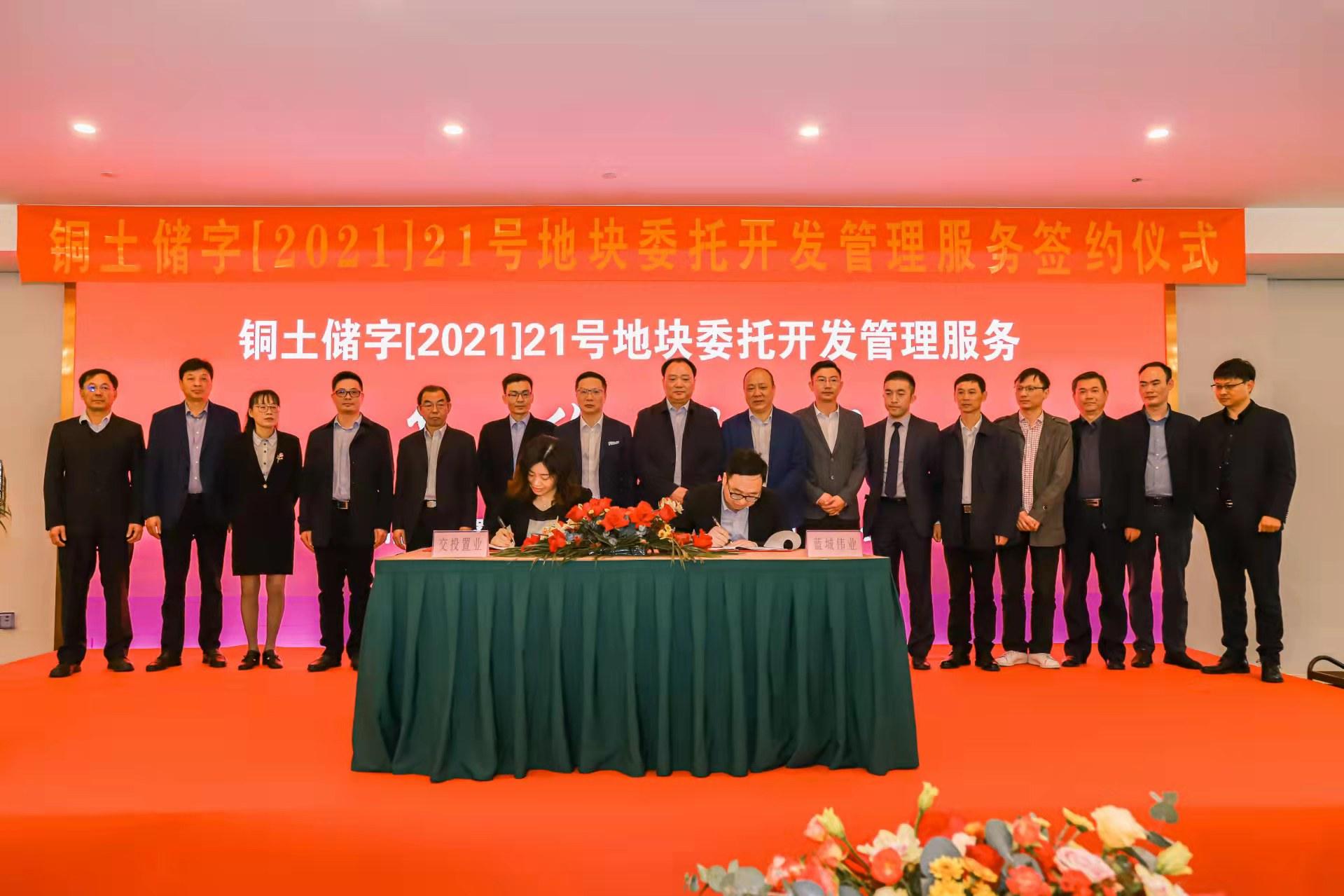 3月12日上午,銅陵交投置業(yè)與藍(lán)城偉業(yè)控股有限公司于銅雀臺(tái)酒店,正式完成銅土儲(chǔ)字【2021】21號(hào)地塊(綠源地塊)委托開發(fā)管理服務(wù)簽約。本次會(huì)議由銅官區(qū)政府副區(qū)長——?jiǎng)k主持,銅陵市招商服務(wù)中心、市住房和城鄉(xiāng)建設(shè)局、市自然資源和規(guī)劃局、招商服務(wù)中心、銅官區(qū)政府相關(guān)部門領(lǐng)導(dǎo),以及銅陵交投、藍(lán)城集團(tuán)領(lǐng)導(dǎo)共同出席了本次簽約儀式。
