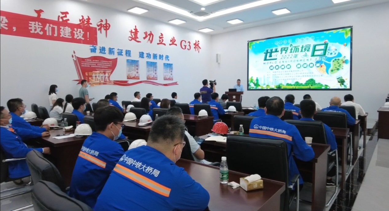 為切實加強生態環保建設,提高施工人員環保意識,6月2日上午,銅陵長江公鐵大橋投資有限公司總經理湯世才在G3產業工人大講堂宣布舉辦世界環境日宣傳活動,全過程建設管理服務項目辦公室、公鐵合建段監理項目部、公路引橋及接線段監理項目部、環境保護及水土保持技術咨詢項目部、中鐵大橋局G3橋項目經理部及公司職員百余人參加了活動。