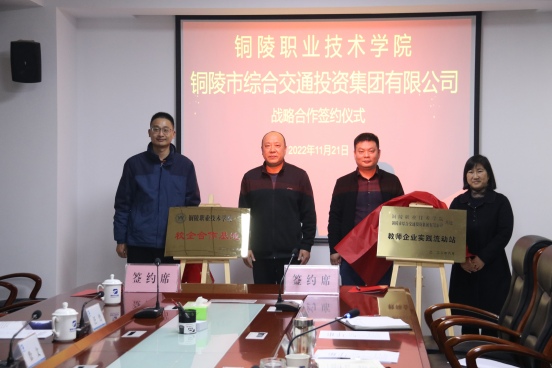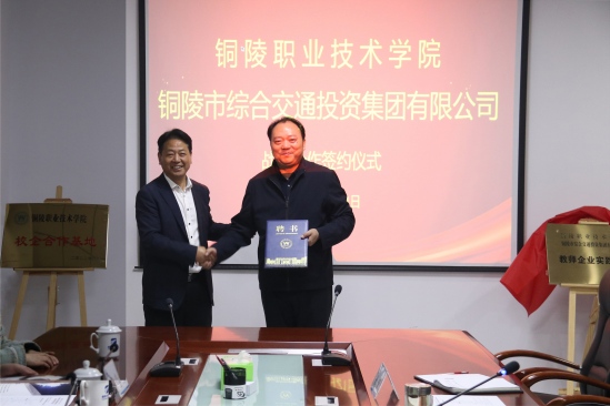 本次校企戰略合作協議的簽訂,標志著銅陵綜合交通投資集團有限公司與銅陵職業技術學院的合作邁上了新臺階。未來,雙方將充分發揮自身優勢,加強互動交流,積極探索校企合作的新思路、新模式,專注培養更多為企業、社會所需,與市場接軌的優秀專業技術人才。