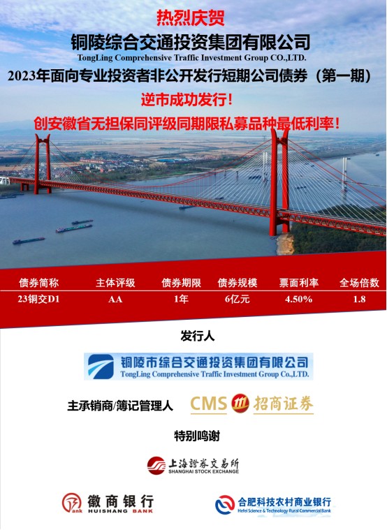此次發(fā)行成功,創(chuàng)下安徽省同評級同期限私募品種歷史最低利率,倍數(shù)為1.8,是交投集團在資本市場的又一次華麗亮相。不僅豐富了交投集團直融產(chǎn)品體系,優(yōu)化了交投集團負(fù)債利率水平,同時為后續(xù)交投集團在資本市場的持續(xù)運作打下堅實基礎(chǔ)。