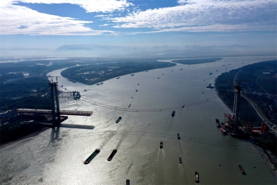 11月22日,由銅陵交投集團投資、中鐵大橋局承擔施工的G3銅陵長江公鐵大橋“貓道”基本完工全線貫通,大橋實現南北“牽手”。
