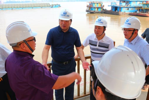 2日下午,何成龍、謝永明一行會同中鐵大橋院有關領導和G3銅陵長江公鐵大橋設計人員,共赴楊泗港長江大橋現場進行考察學習。中鐵大橋局總經理文武松、楊泗港長江大橋項目經理羅瑞華等陪同考察。