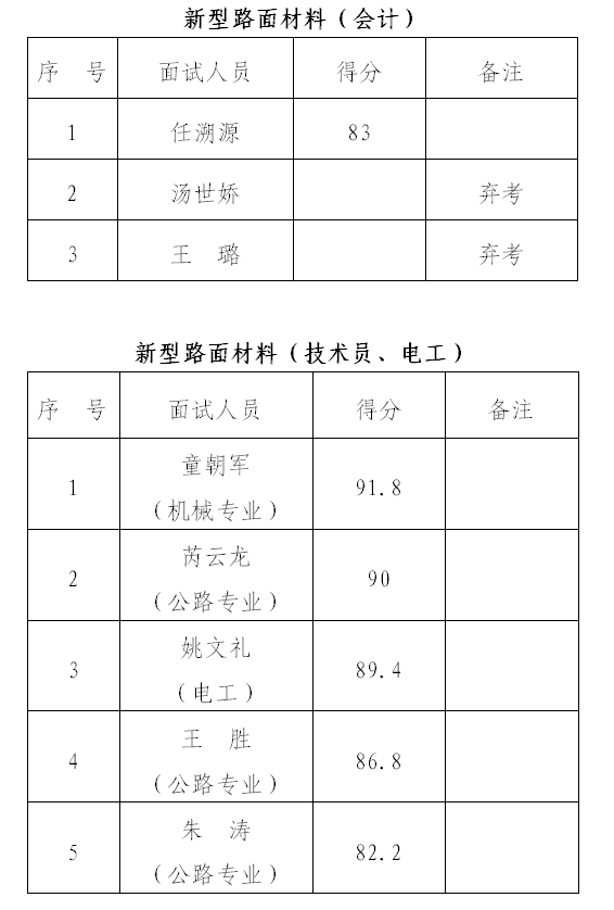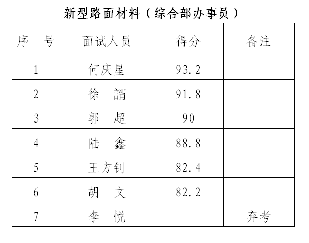 根據(jù)《銅陵市綜合交通投資集團(tuán)有限公司公開招聘人員面試公告》,我公司已于1月13日開展銅陵市綜交新型路面材料有限責(zé)任公司、銅陵交投再生資源綜合利用有限公司招聘人員面試工作,現(xiàn)將擬招錄人員名單公示如下。