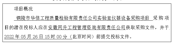 項目名稱:銅陵市華信工程質量檢驗有限責任公司實驗室儀器設備采購項目