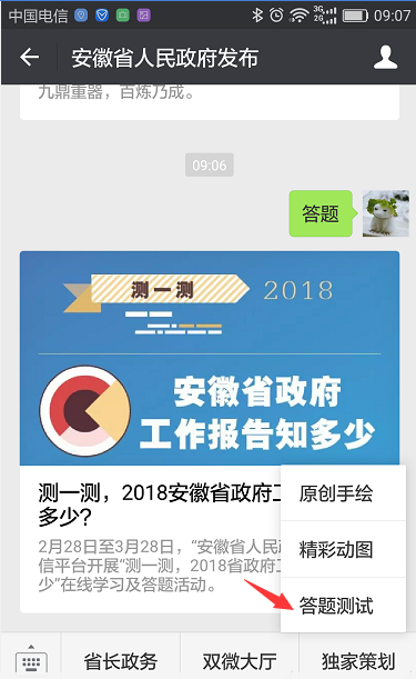 根據(jù)市政府辦公室文件通知要求,扎實做好2018省政府工作報告學習貫徹工作,定于2月28日至3月28日,通過“安徽省人民政府發(fā)布”微信平臺開展“測一測,2018省政府工作報告知多少”在線學習及答題活動。