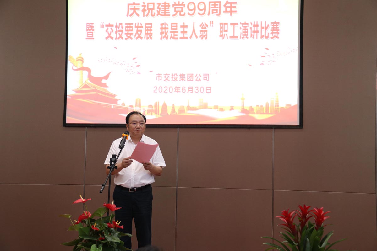 為熱烈慶祝中國(guó)共產(chǎn)黨成立99周年,在公司上下進(jìn)一步樹(shù)牢“發(fā)展為要、項(xiàng)目為王、實(shí)干為先”鮮明干事創(chuàng)業(yè)導(dǎo)向,積極展現(xiàn)集團(tuán)公司職工團(tuán)結(jié)拼搏、昂揚(yáng)向上的精神風(fēng)貌。6月30日下午,集團(tuán)公司舉行慶祝建黨99周年暨“交投要發(fā)展、我是主人翁”職工演講比賽。市委組織部副部長(zhǎng)、市委非公有制經(jīng)濟(jì)和社會(huì)組織工作委員會(huì)書(shū)記孫彬,市委宣傳部常務(wù)副部長(zhǎng)張文林,市國(guó)資委主任、黨委書(shū)記丁灝,市總工會(huì)黨組書(shū)記、副主席劉亞平等應(yīng)邀出席活動(dòng),集團(tuán)公司黨工委班子成員、中層以上管理人員及部分職工代表觀(guān)看比賽。