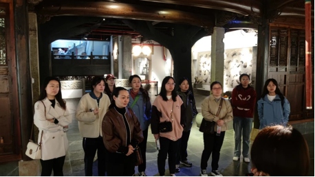 了解一座城,從博物館開始。秀山門博物館主要陳列木雕、石雕、磚雕為主題的古建筑雕刻構(gòu)件,以及瓷器、字畫、刺繡等藝術(shù)品,集中展現(xiàn)池州地域文化的魅力。活動中,大家饒有興致地傾聽著工作人員的講解,提問、互動不亦樂乎。博物館的三樓展廳是中國古代女子文物展,這里陳列著從少女閨閣里的裝飾品和日常用具,到出閣之時的“十里紅妝”,再到婚后的“女紅”、“慈闈春秀”祝壽匾額等,這些留存至今的女性主題文物,再現(xiàn)了中國古代女性的一生。參觀過程中,大家凝視著這些精美的展品,在驚嘆中國古代女子巧奪天工的技藝水平同時,更是感嘆自己生在紅旗下,長在春風(fēng)里的幸福。