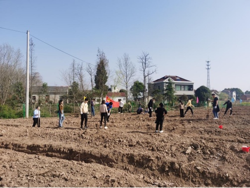 活動中,在村農(nóng)業(yè)合作社的專業(yè)種植人員指導下,大家對如何正確種植黃桃有了初步了解,紛紛拿起鐵鍬等工具投入到種植中去。分成三人一組,協(xié)同配合,揮鍬鏟土,扶樹填坑,澆水正苗,每道工序都認真細致。在大家的共同努力下,新苗在村道兩旁構(gòu)成了一道靚麗的風景線。
