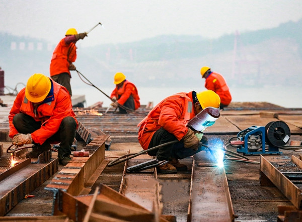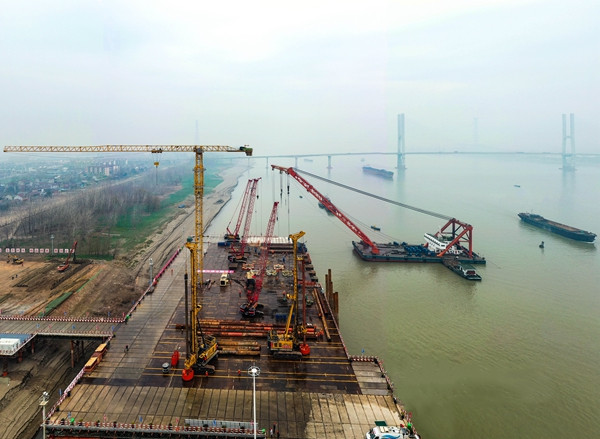 4日上午8時30分,位于長江北岸G3銅陵長江公鐵大橋3號墩的施工現場,上百名橋梁建設者正在進行施工平臺的鋪設和完善,以及鋼護筒的插打作業?,F場塔吊林立,焊花四濺,一派繁忙的景象。中鐵大橋局G3銅陵長江公鐵大橋項目部一分部黨支部書記趙懿告訴記者,目前大型吊船、履帶吊、塔吊、旋挖鉆機等大型設備已經到位,“2022年,我們計劃實施橋墩鉆孔樁、承臺、墩身等施工,年度計劃投資10億多元?!?