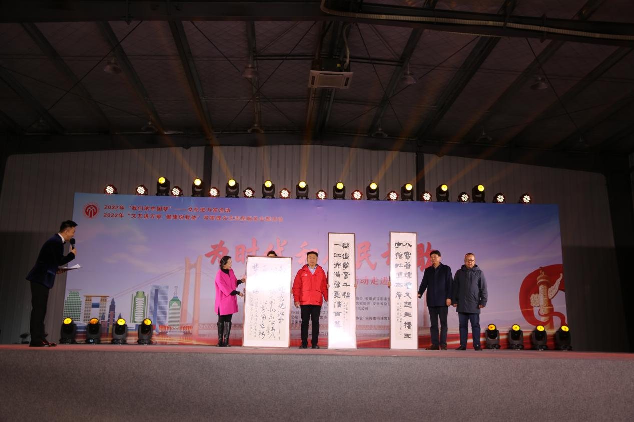 2月28日晚6點,安徽省文聯文藝志愿者協會“為時代和人民放歌”文化進萬家活動在G3銅陵長江公鐵大橋工地隆重舉行。中國戲劇家協會副主席韓再芬等80多名藝術家、文藝工作者走進工地,為200多名大橋建設者帶來了一場豐富多元的文藝盛宴。