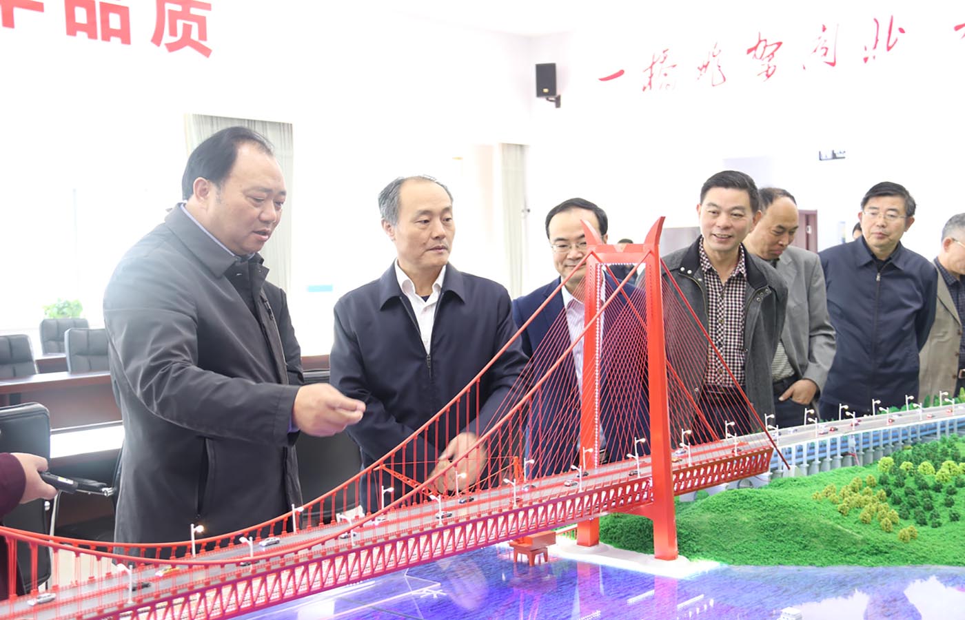11月12日下午、13日下午,市委書記、市人大常委會主任丁純,市人大常委黨組副書記、副主任何剛明分別前往G3銅陵長江公鐵大橋前期工程建設(shè)點,實地調(diào)研相關(guān)工作進展情況。副市長黃學(xué)龍、市委秘書長馬軍,市發(fā)改委、市交通局、市農(nóng)業(yè)農(nóng)村局、郊區(qū)政府相關(guān)負責(zé)人參加調(diào)研,集團公司黨工委書記、董事長何成龍,黨工委委員、副總經(jīng)理黃勇,G3銅陵長江公鐵大橋前期工程項目經(jīng)理劉幸福陪同調(diào)研。