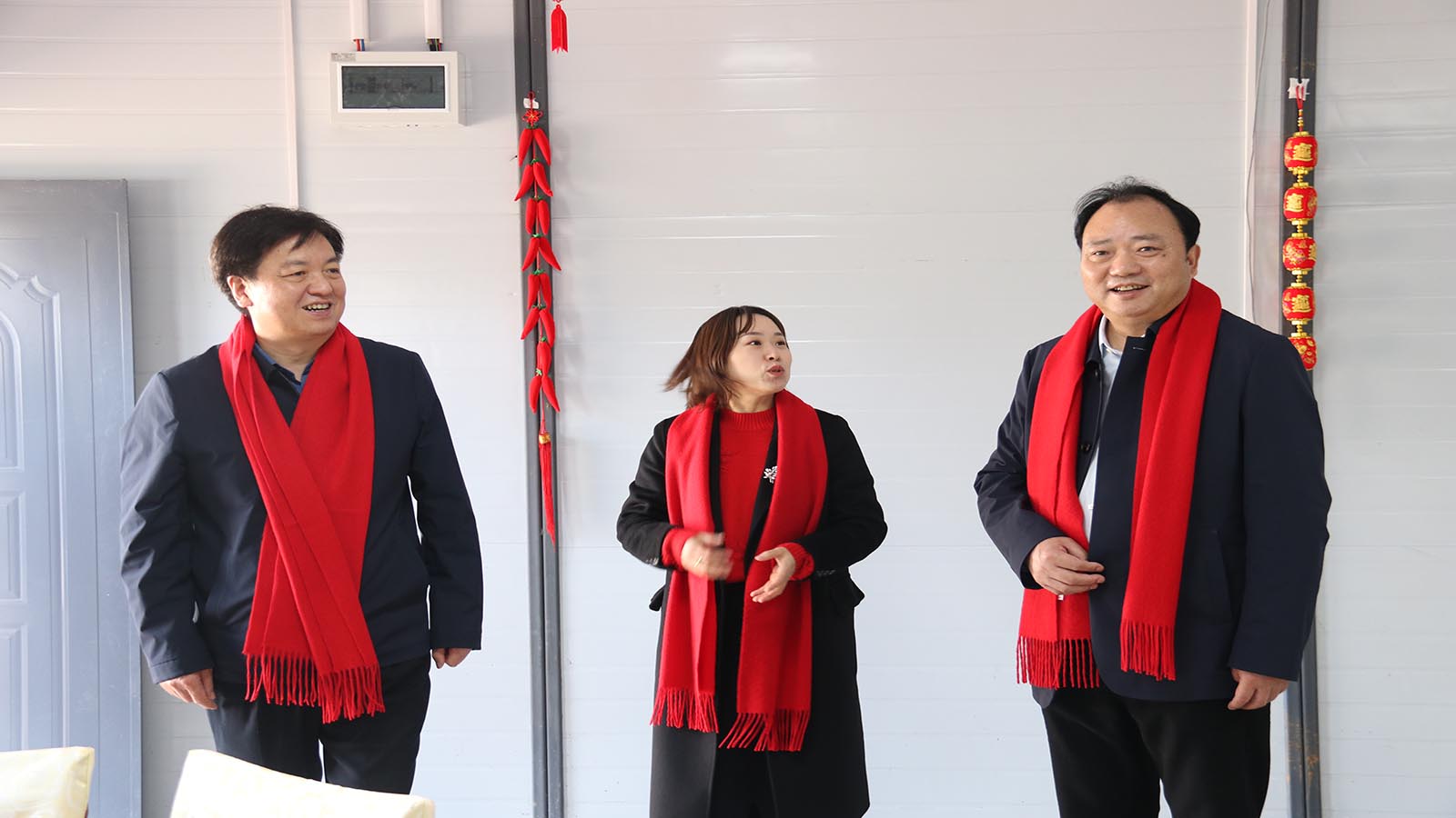 黃學龍一行走進項目經理部辦公生活場所,與職工傾心交談,認真聽取項目建設情況,關切詢問他們老家情況和春節安排,同時送上水果等慰問品。